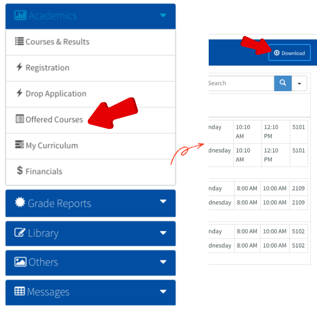 2.Download the Offered Courses Excel file