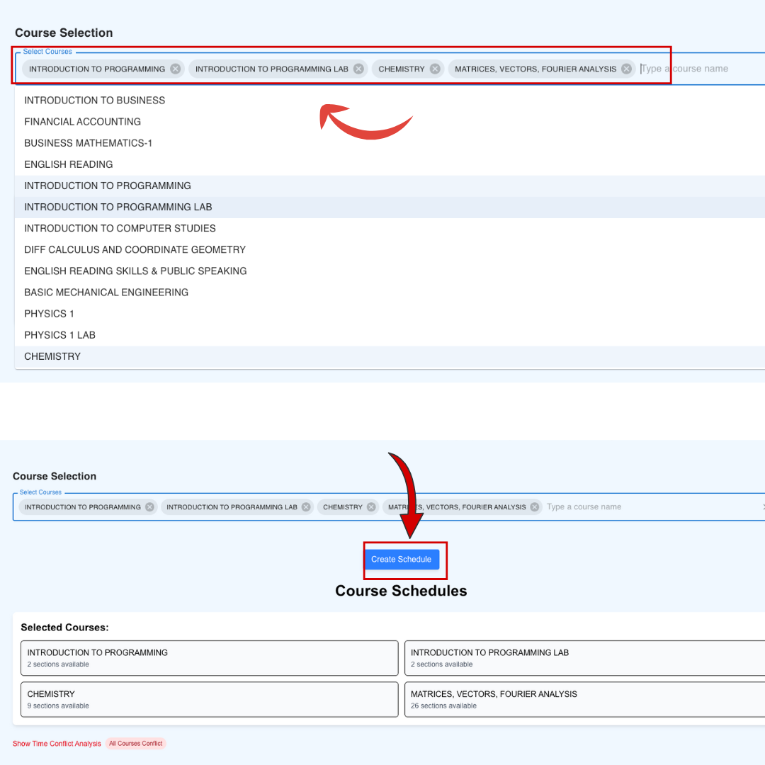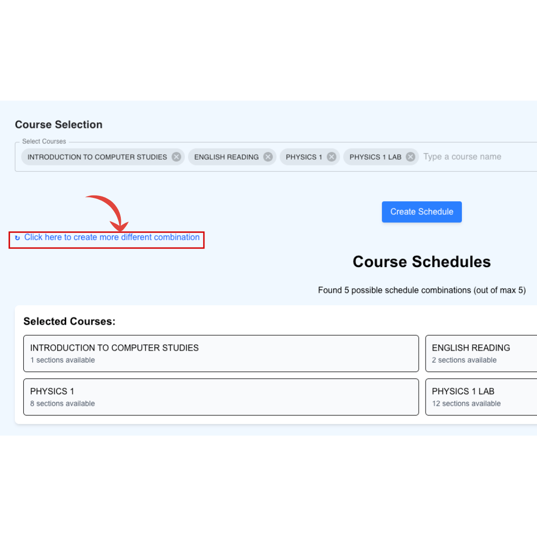 5.Select preferred courses and click on Create Schedule