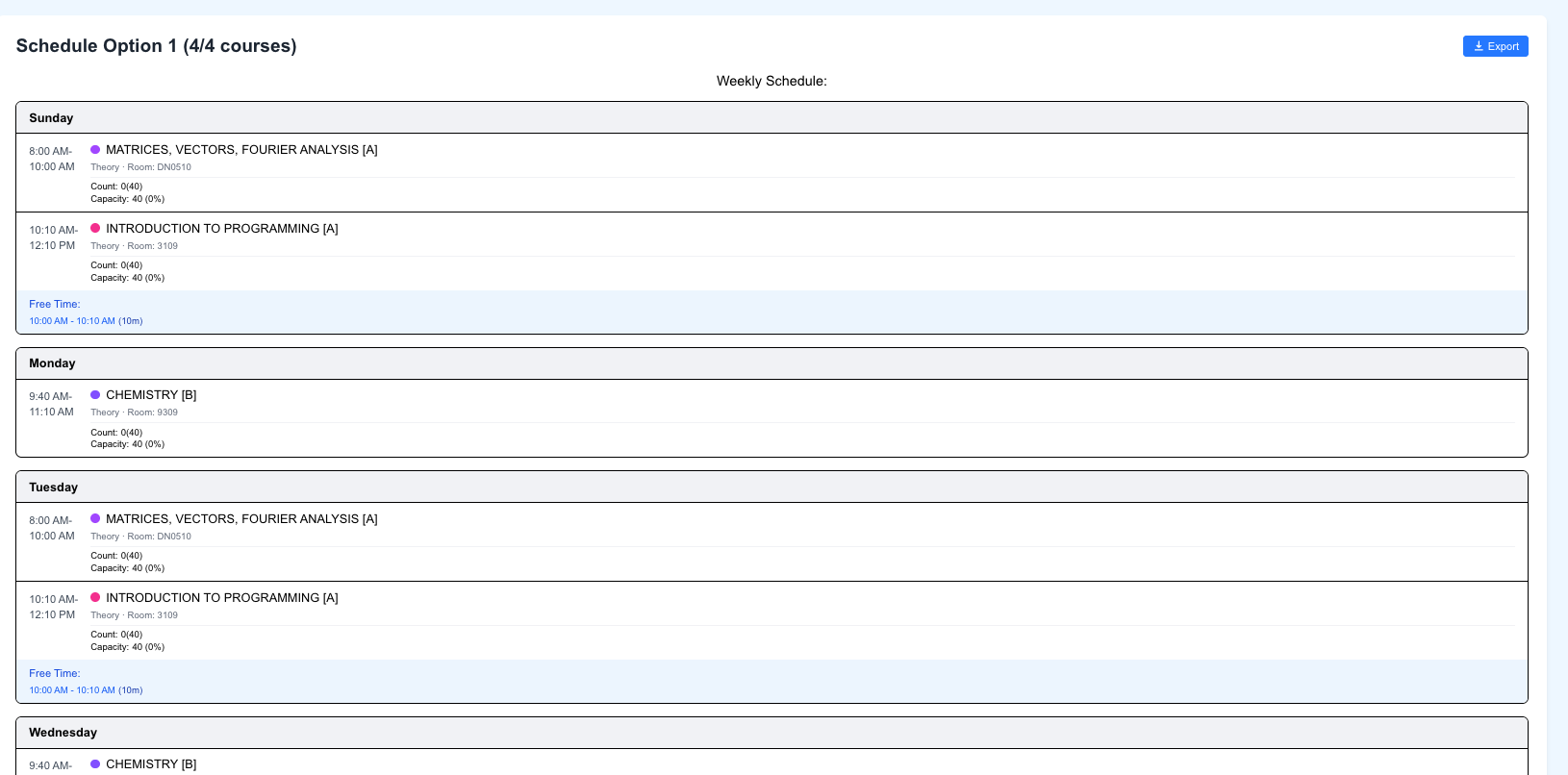 6.View multiple clash-free schedules